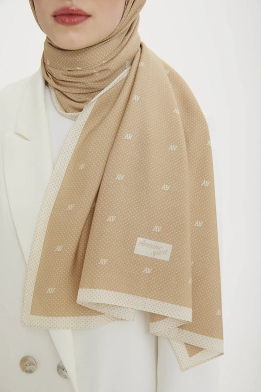 Armine Sport Modal Şal Puan Ve Logo Desenli Bej