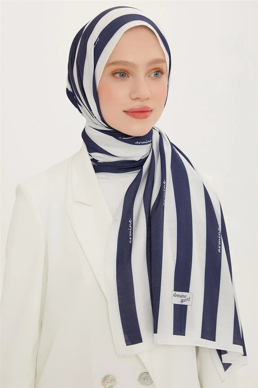 Armine Sport Modal Şal Lacivert-Beyaz